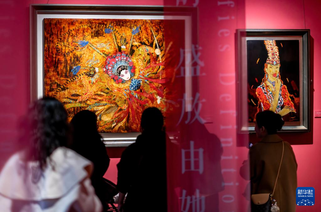 观众在福建省沈绍安漆艺博物馆里观赏女性题材的漆画作品(3月7日摄)。新华社记者 魏培全 摄