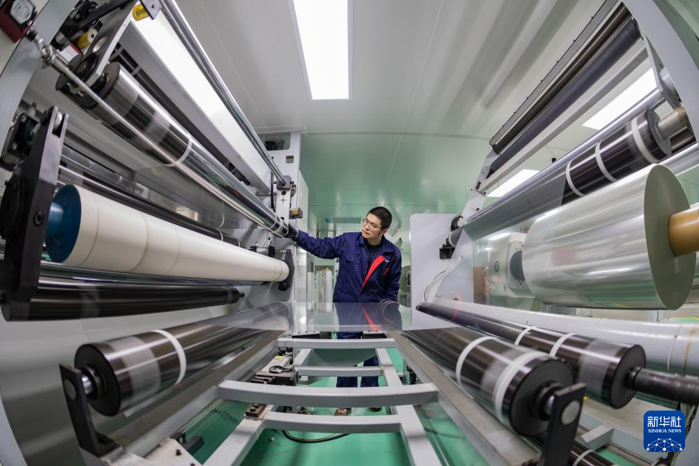 3月8日,在位于江苏盱眙的江苏宇狮薄膜科技有限公司,工人在生产车间忙碌。新华社发(邵光明 摄)