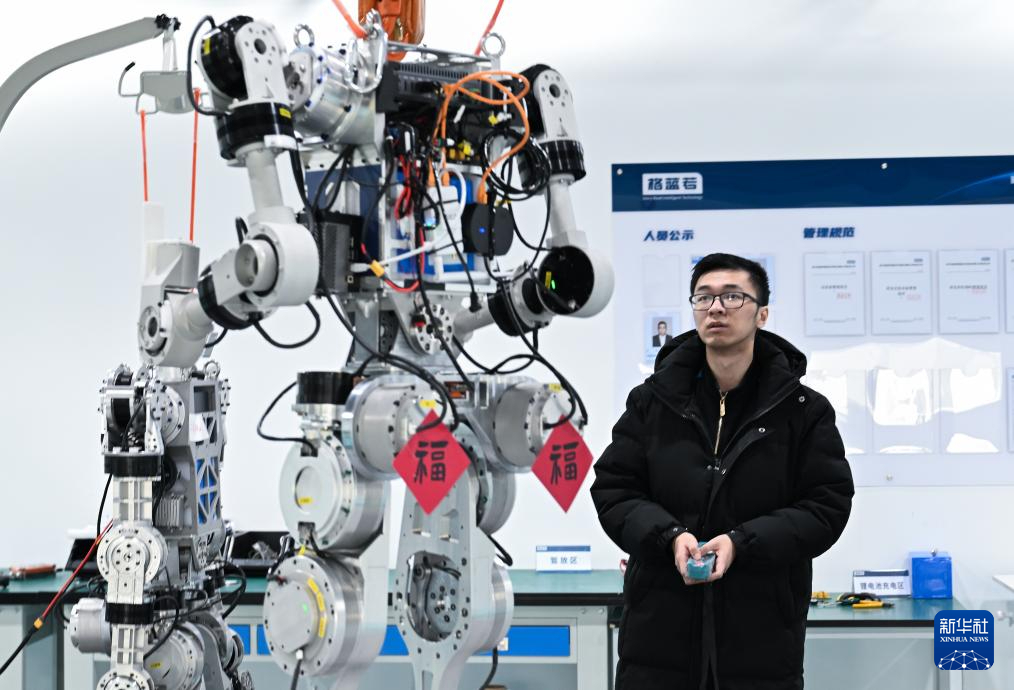 2月24日,湖北武汉格蓝若智能技术股份有限公司员工在调试人形机器人。新华社记者 杜子璇 摄