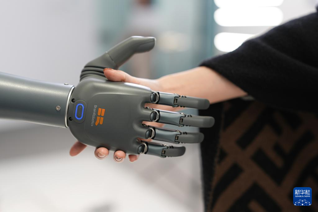 浙江强脑科技有限公司工作人员在演示智能手臂(2月26日摄)。新华社记者 黄宗治 摄