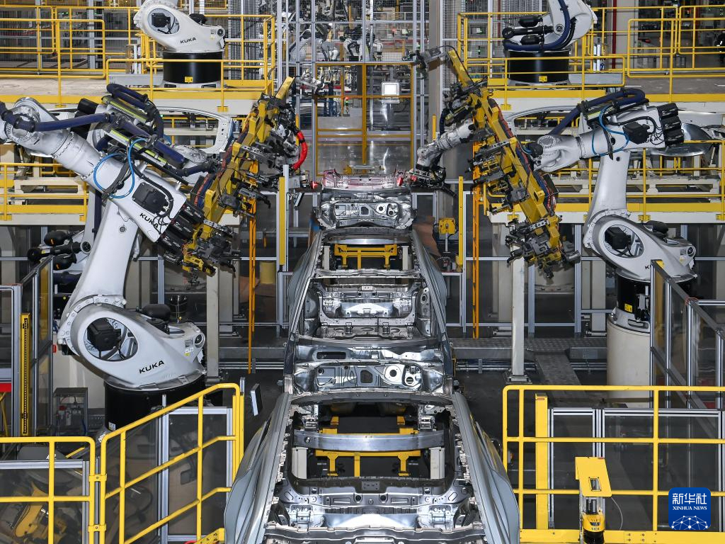 2月26日在吉利汽车宝鸡制造基地焊装厂拍摄的自动化焊接线。新华社记者 邹竞一 摄