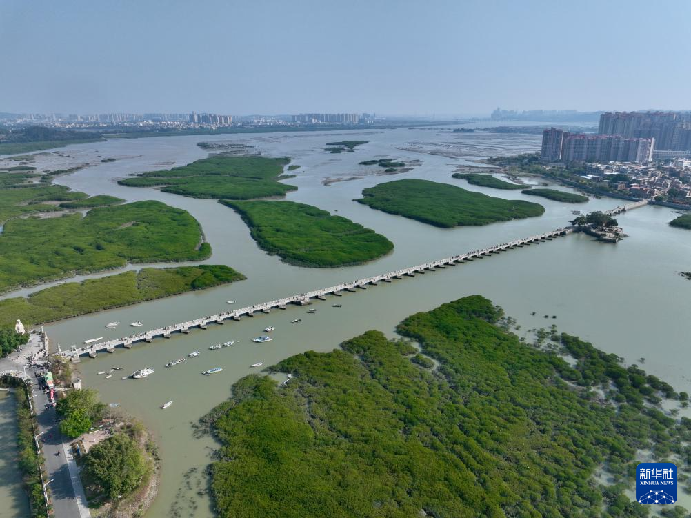 这是3月18日拍摄的洛阳桥与红树林(无人机照片)。