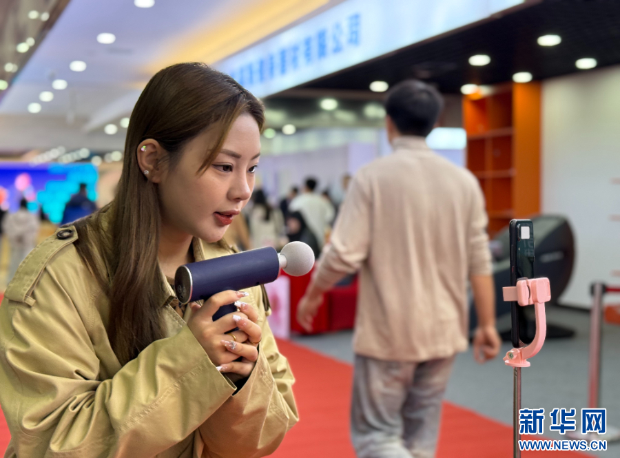 主播通过直播带货、“云”逛展等方式,全方位展示产品优势。新华网发(张文奎 摄)