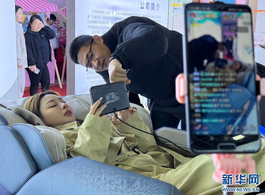 活动采用“线下促销+线上直播”方式展示当地特色工业消费品。新华网发(张文奎 摄)