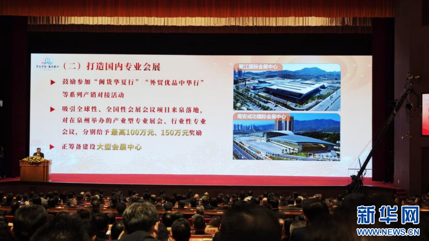 第二届“海丝”侨商投资贸易大会暨泉州市内外贸高质量发展大会现场。新华网 刘默涵 摄