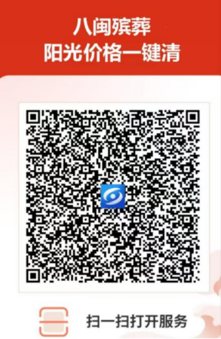 公众只要扫一扫“八闽殡葬阳光价格一键清”二维码,全省殡仪馆所有收费项目、收费标准、服务内容、服务标准、服务流程、收费依据和销售用品价格、计价单位、优惠政策等9类价格要素“一网尽览”,真正实现明明白白付费、清清楚楚办事。