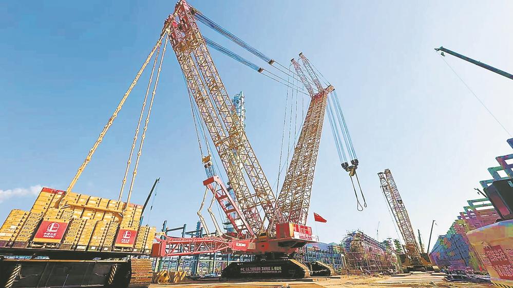 徐工XGC88000型1号机准备进行丁烯-1精馏塔吊装。柯少如 摄