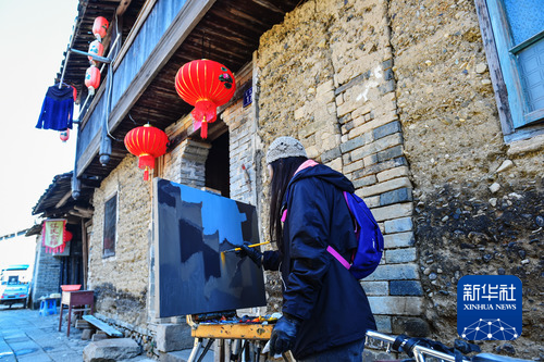 一名旅行画家在福建省武夷山市五夫镇的街巷内写生。新华社记者 李芒茫 摄