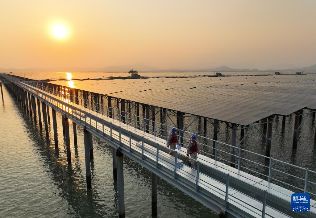4月29日,三峡集团东山杏陈180兆瓦海上光伏电站项目实现全容量并网。新华社记者 林善传 摄
