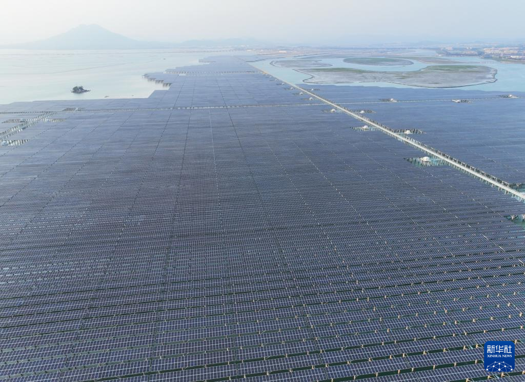 4月29日拍摄的三峡集团东山杏陈180兆瓦海上光伏电站(无人机全景照片)。新华社记者 林善传 摄