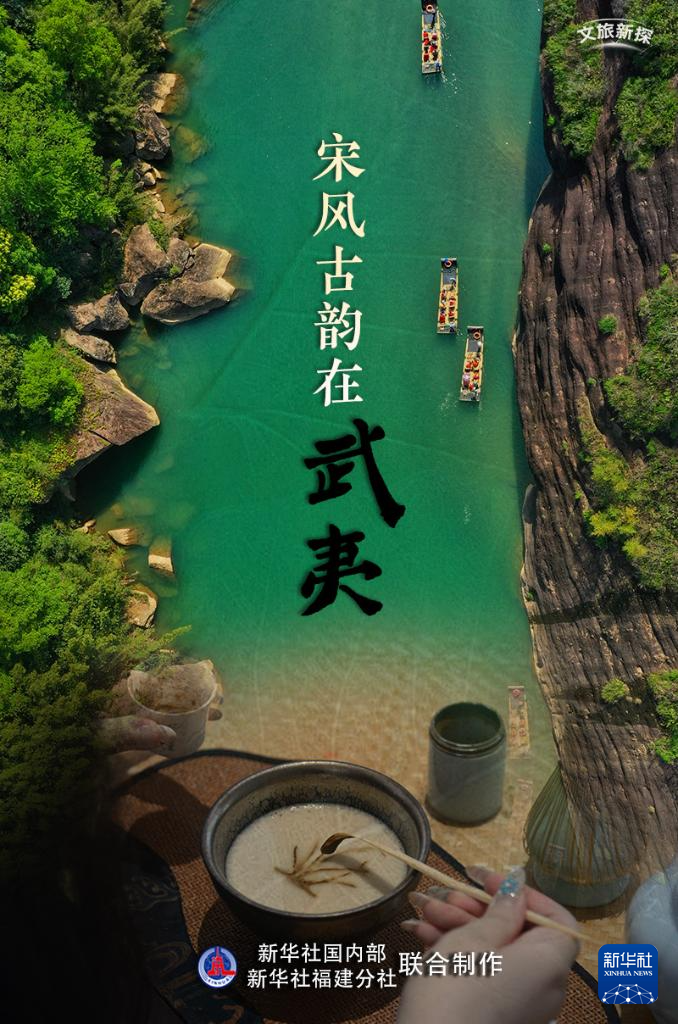 连接古和今,还有一杯武夷茶。在武夷山度假区的“九曲静茗”茶舍内,游客们坐在几案前,跟着茶艺师学习点茶。茶筅击拂茶汤,茶针蘸上茶粉细细勾勒……不多时,上海游客杜紫娇在建盏中绘出一束兰花,她举起手机记录这个“宋代拉花”:“之前看一部古装电视剧,被其中的宋代点茶惊艳,没想到在武夷山还能亲身体验。”
