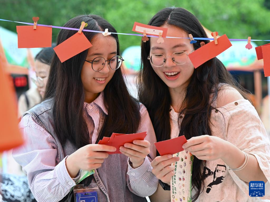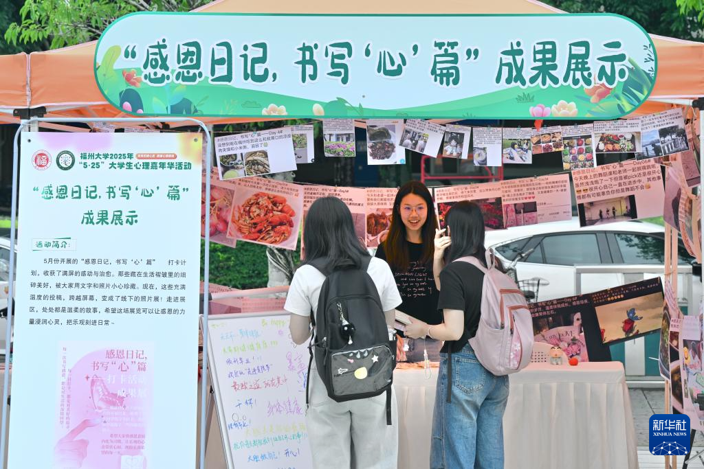 5月25日,在福州大学心理嘉年华活动上,学生在参与“感恩日记”心理互动项目。新华社记者 姜克红 摄