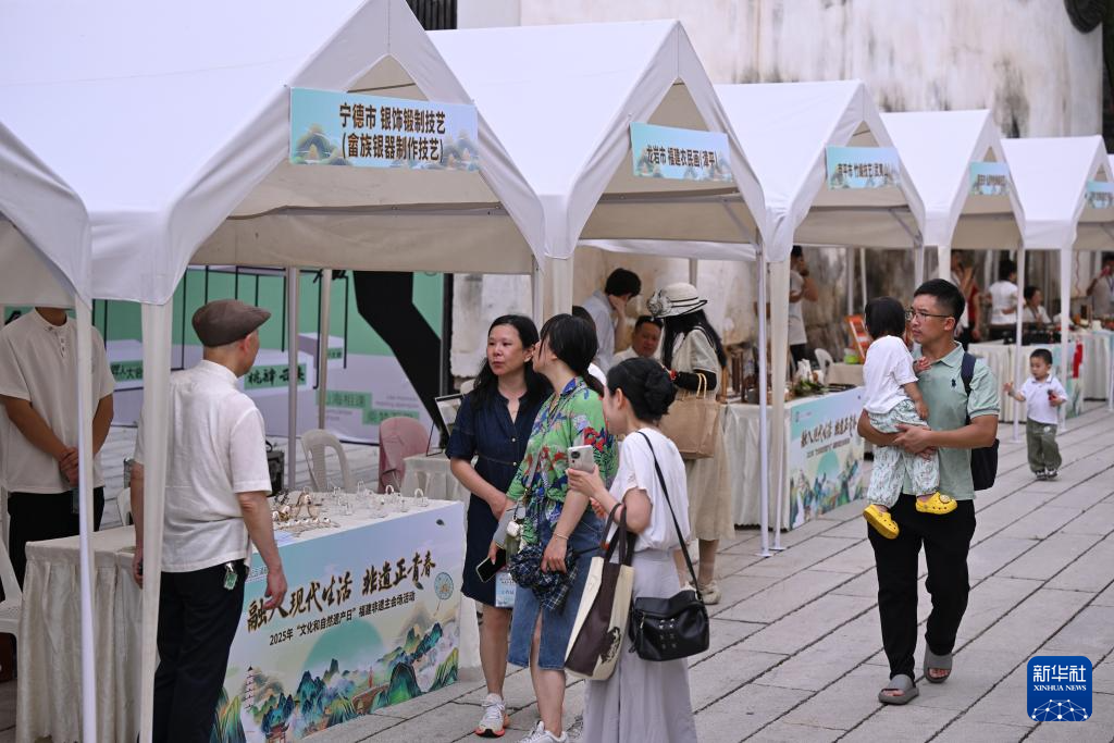 6月14日,游客在福建非遗主会场活动手工市集上参观选购。新华社记者 姜克红 摄
