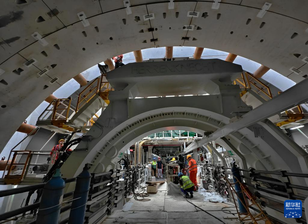 这是厦金大桥(厦门段)环岛路隧道盾构掘进施工现场(6月13日摄)。