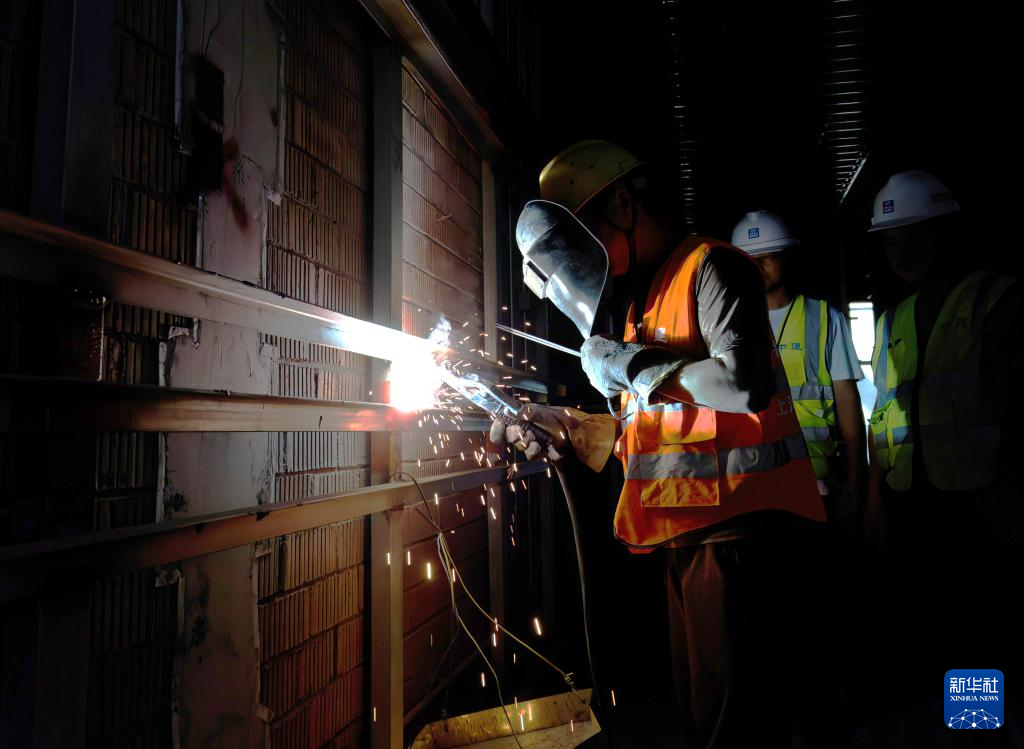 6月16日,在厦门翔安国际机场B指廊VIP区施工现场,中建三局的施工人员在进行龙骨焊接施工。新华社记者 魏培全 摄