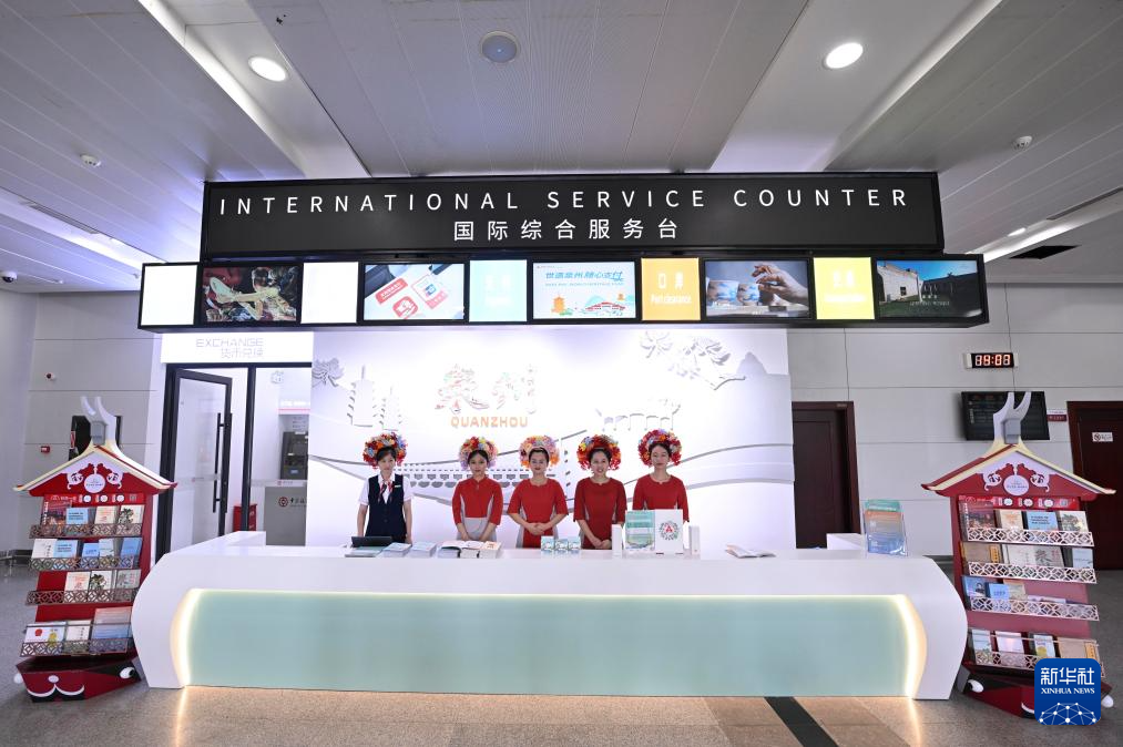 6月20日,工作人员在新设立的泉州晋江国际机场国际综合服务台迎候旅客。新华社记者 姜克红 摄