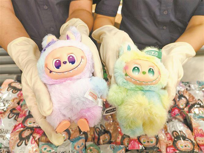 厦门海关查获的山寨泡泡玛特玩偶。(通讯员 游娟 摄)