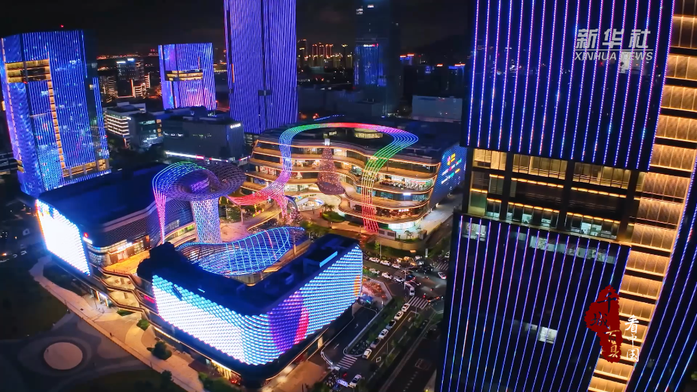 夜幕降临,厦门银城智谷在鹭岛之畔粲然绽放。高楼耸峙,幕墙流转,灯火如星瀑倾泻,与滨海西大道的璀璨夜景连成一片。科技光轨映射出千年银城的当代风华,蝶形天桥以水墨曲线串联商圈人潮,桥影、车流与光轨交织,恰似银城智谷跃动不息的脉搏。