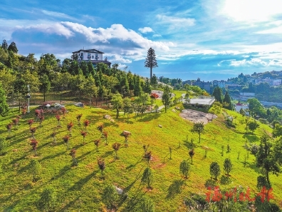 中美青年友谊林占地约29500平方米,整个公园依山而建、依势取景,设有“坚如磐石”“生生不息”“友谊汇流”“登高远眺”等4个特色节点。