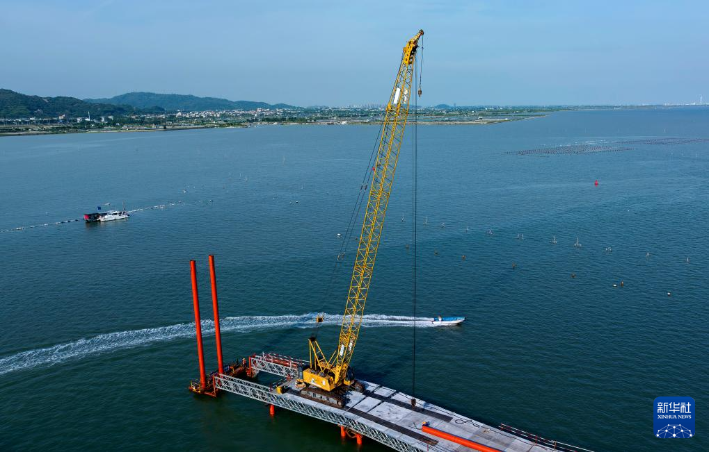 这是漳江湾跨海特大桥施工现场(7月16日摄,无人机照片)。