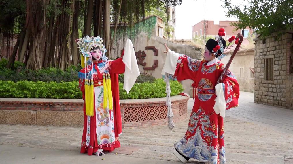 近年来,岑兜村以戏曲文化为依托,因地制宜,在村里打造了高甲戏户外博物馆,规划了“凡音之起”“戈甲天下”“丑园”等10个点位。生动的高甲戏壁画、逼真的艺人雕像、保存完好的旧戏馆等元素,让游客可以更直观、更形象地了解岑兜村的历史和高甲戏的起源、发展历程以及演变,近距离体验传统文化的魅力和精髓。