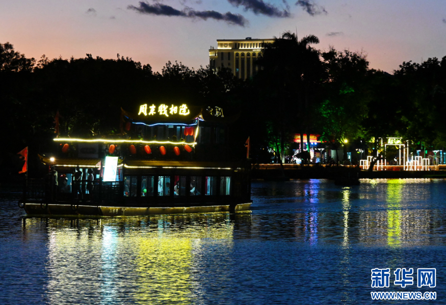 8月16日,“周末戏相逢”画舫在福州西湖夜游。
