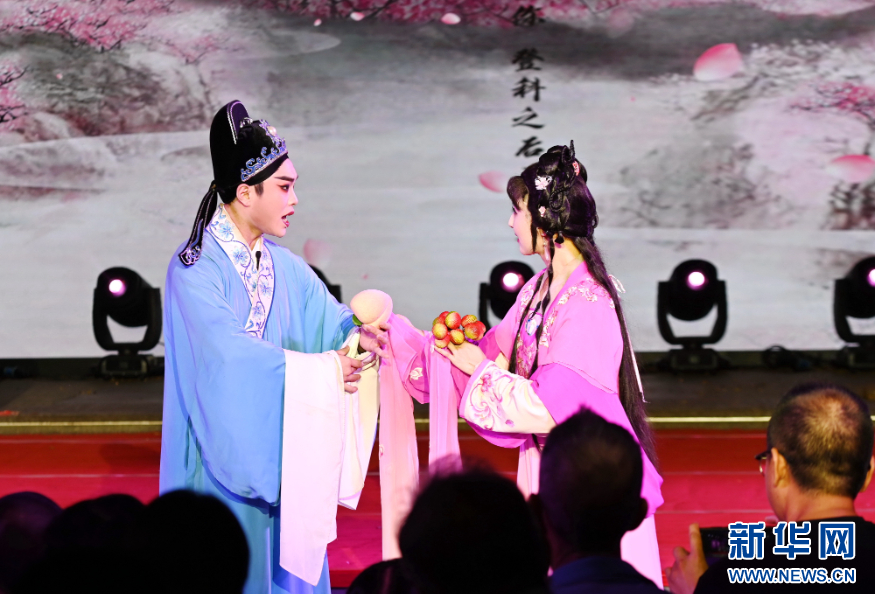 8月16日,闽剧《荔枝换绛桃·投荔》表演选段。新华社记者 林善传 摄
