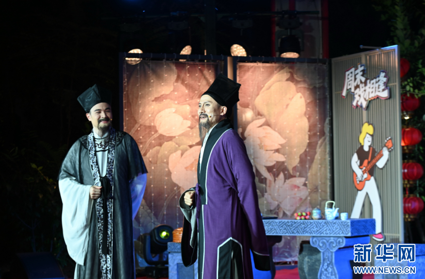 当晚,由福建省文化和旅游厅打造的“周末戏相逢”公益性演出活动——闽剧沉浸式演出《福“见”儒林》,在福州西湖金鳞小苑演出,为市民游客呈现一场让文化“活”起来的国潮新体验。