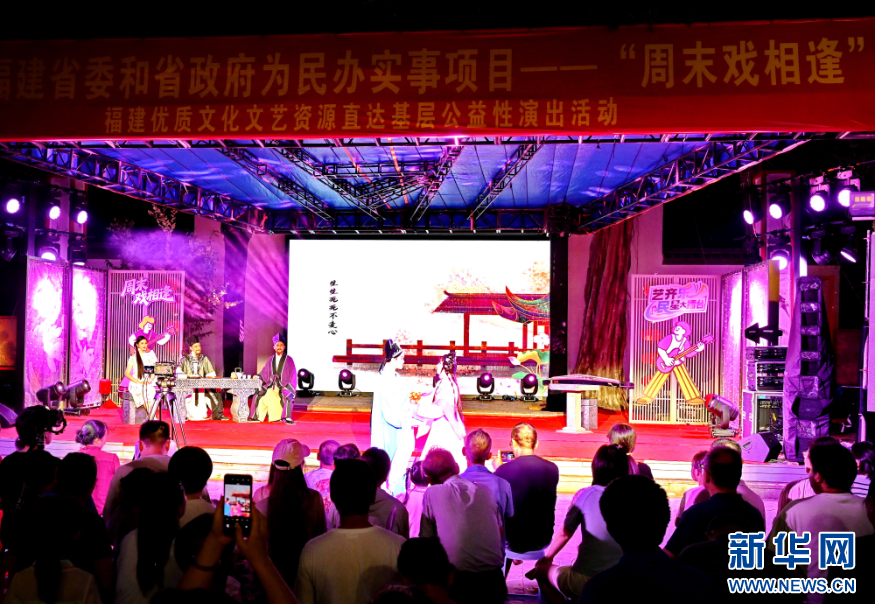 8月16日,福建省委和省政府为民办实事项目“周末戏相逢”在福州西湖金鳞小苑演出现场。新华社记者 林善传 摄
