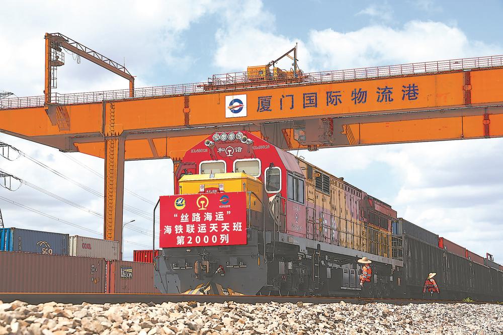 16日,第2000列“丝路海运”海铁联运天天班47622次在厦门国际物流港整装待发,准备驶向江西向塘国际陆港。胡寻风 摄