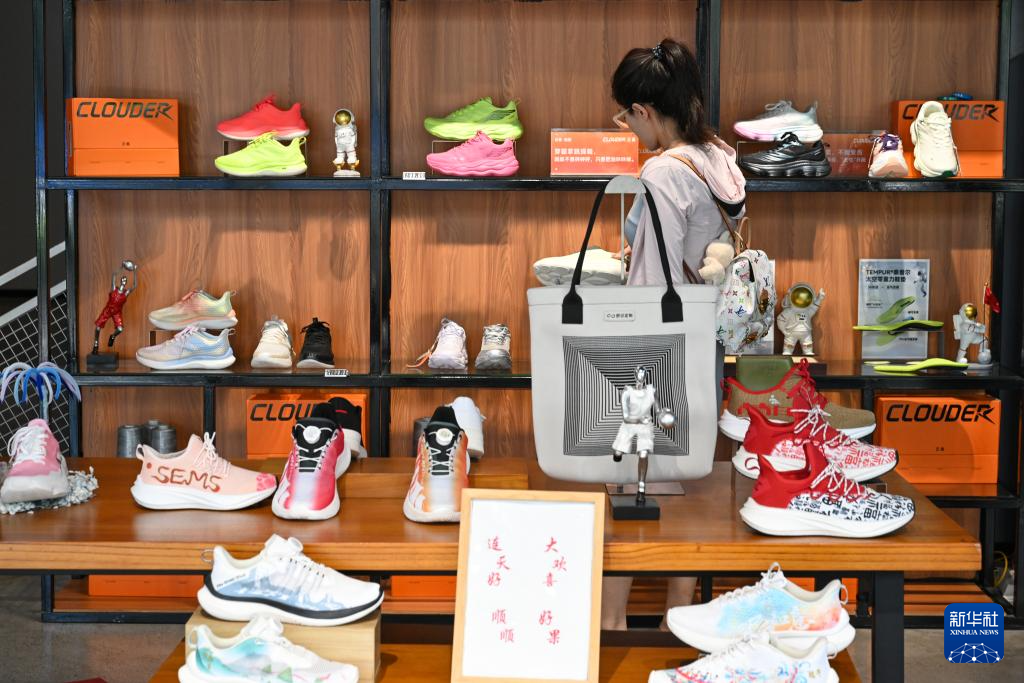 8月19日,消费者在福建莆田双驰科技定制工厂店挑选个性化定制鞋。新华社记者 周义 摄