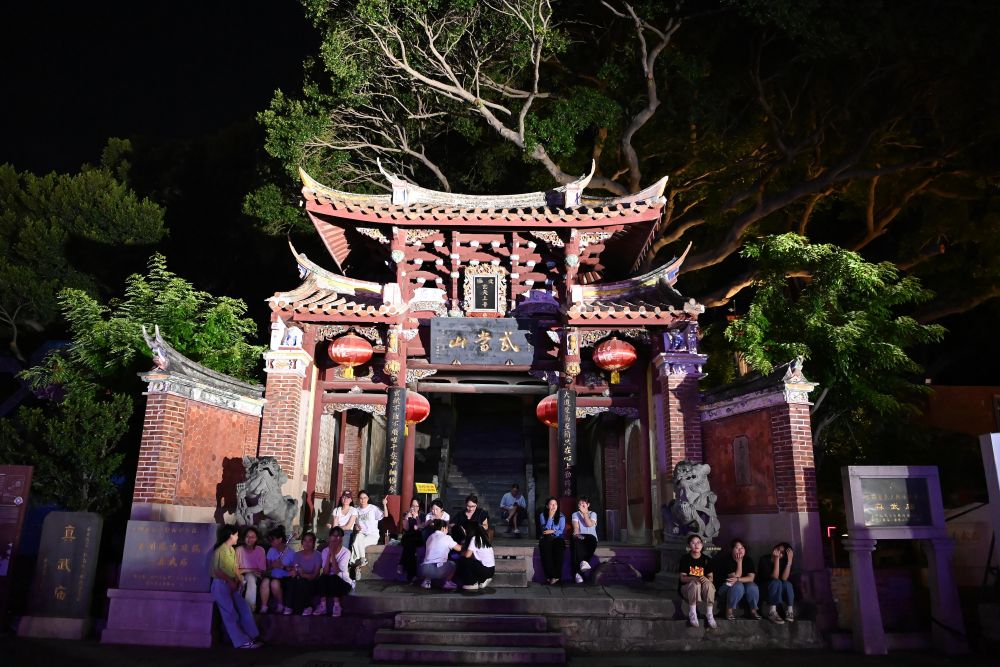8月18日晚,人们在真武庙(南武当)山门前休憩。