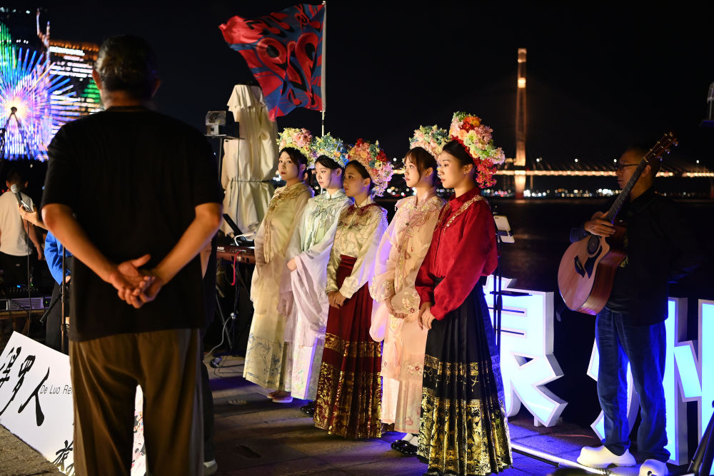 8月18日晚,旅拍项目“夜簪花”在上岸SeaLand松弛集市亮相。