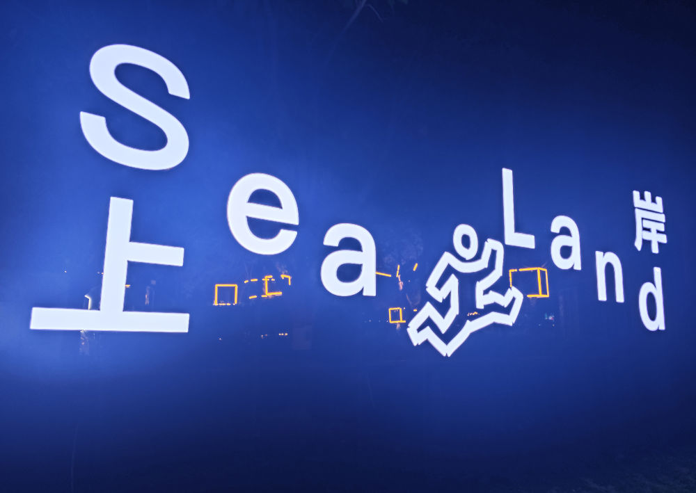 这是8月18日晚拍摄的上岸SeaLand的标志(手机照片)。