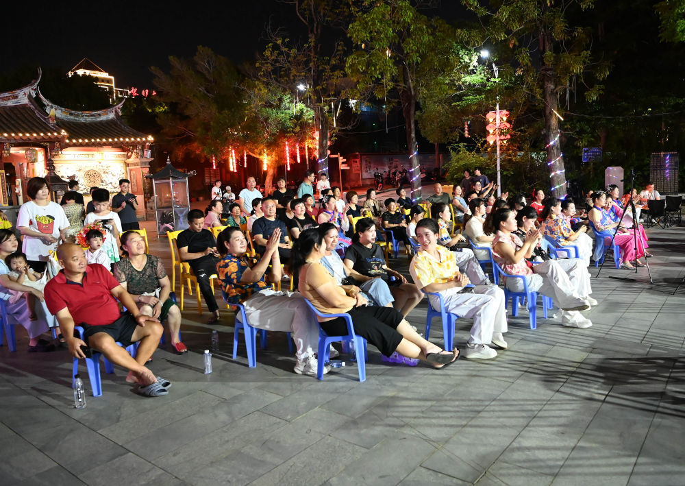 8月18日晚,人们在真武庙广场观看音乐会。