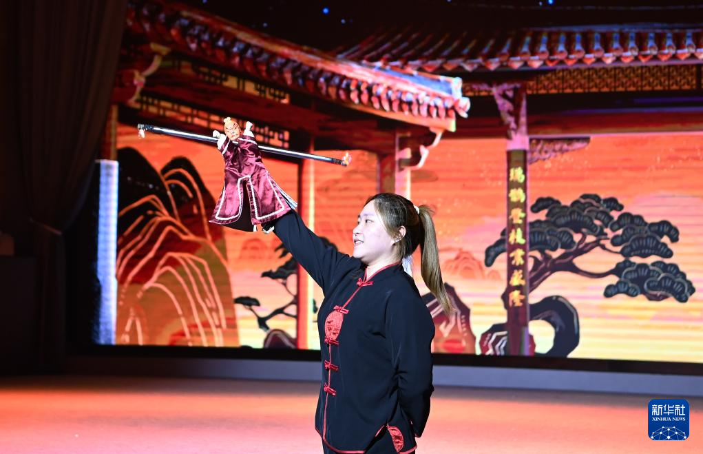 8月19日,在福建晋江梧林村,演员在融合情景剧《侨批往事》中进行掌中木偶戏表演。新华社记者 肖潇 摄