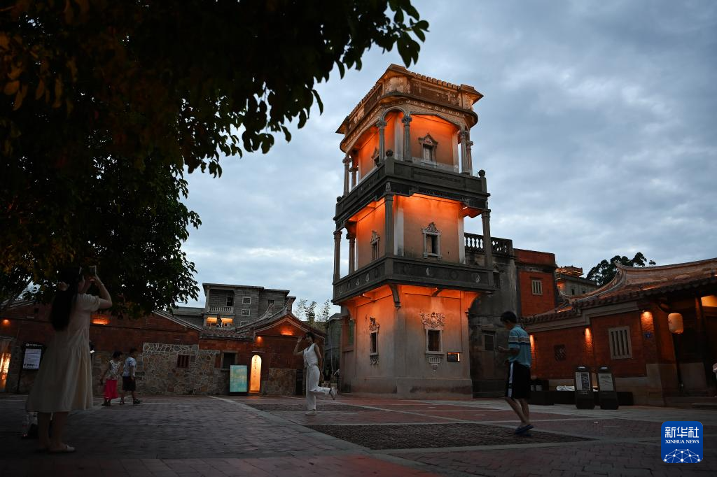 8月19日,人们在福建晋江梧林村的枪楼游玩。新华社记者 肖潇 摄