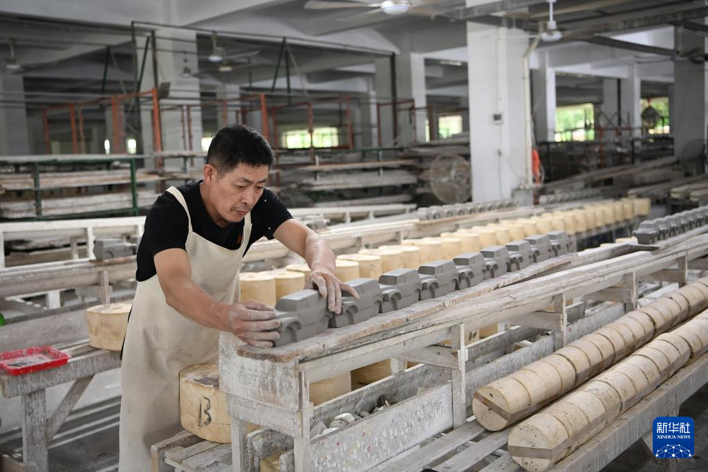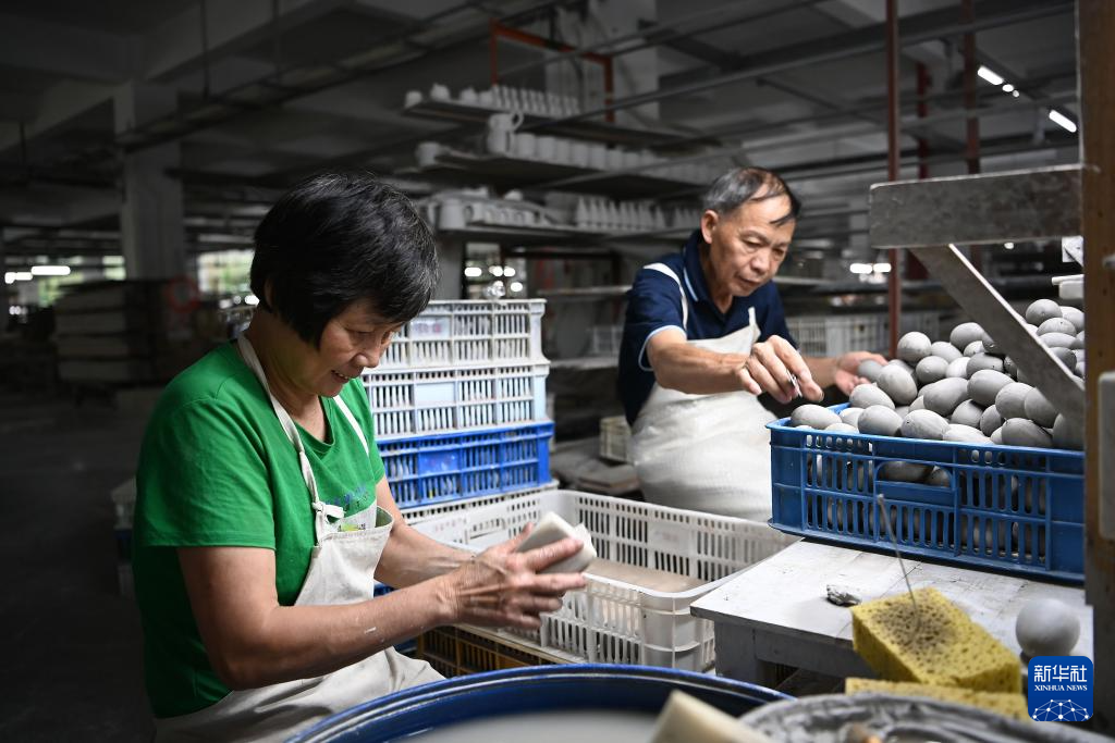 8月20日,福建泉州顺美集团有限责任公司的工人在车间进行陶瓷产品的脱模。新华社记者 肖潇 摄