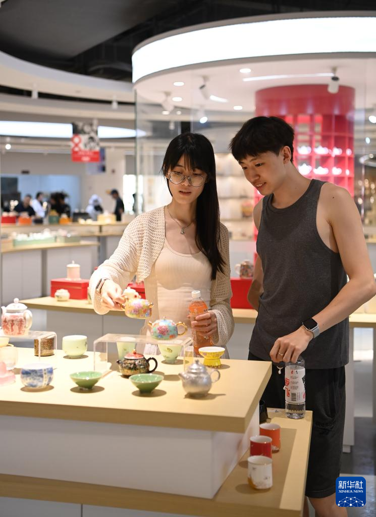 8月20日,游客在中国陶瓷电商物流园全球陶瓷选品中心参观。新华社记者 肖潇 摄