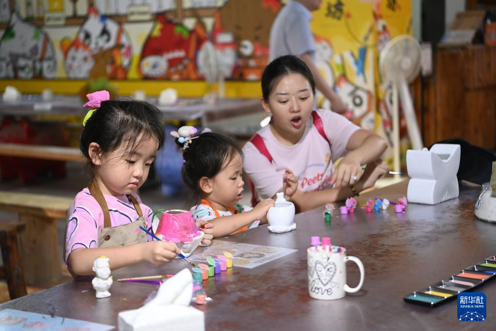 8月20日,游客在福建泉州顺美集团有限责任公司陶瓷文化世界体验给瓷器上色。新华社记者 肖潇 摄