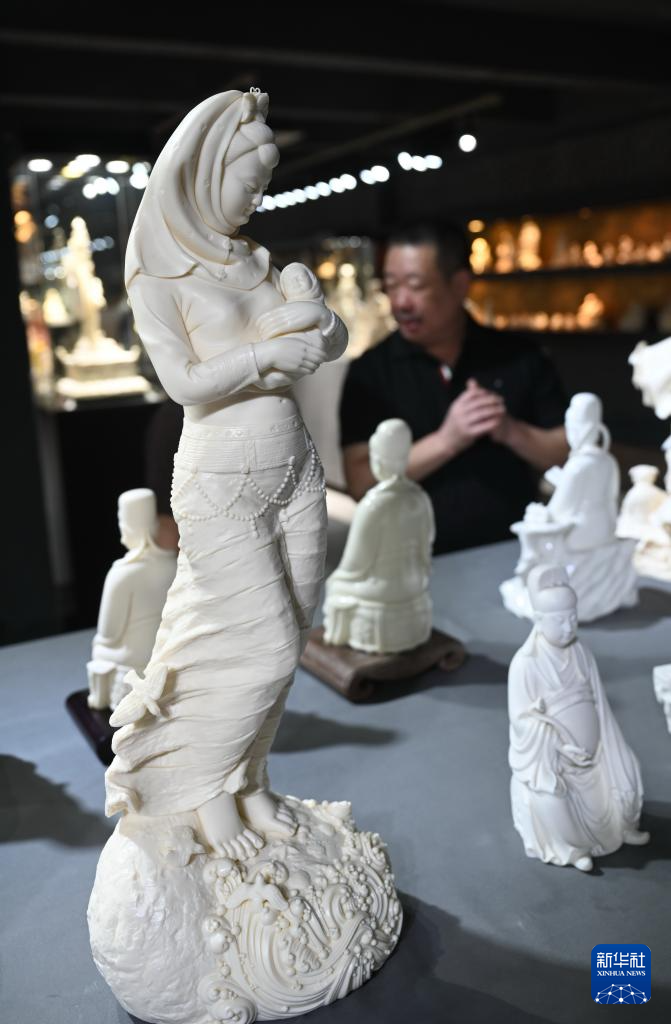 8月20日拍摄的中国工艺美术大师林建胜和他的白瓷出口产品。新华社记者 林善传 摄