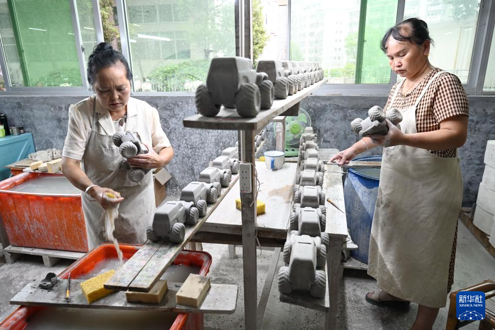 8月20日,福建泉州顺美集团有限责任公司生产车间,工人在制作陶瓷产品。新华社记者 林善传 摄
