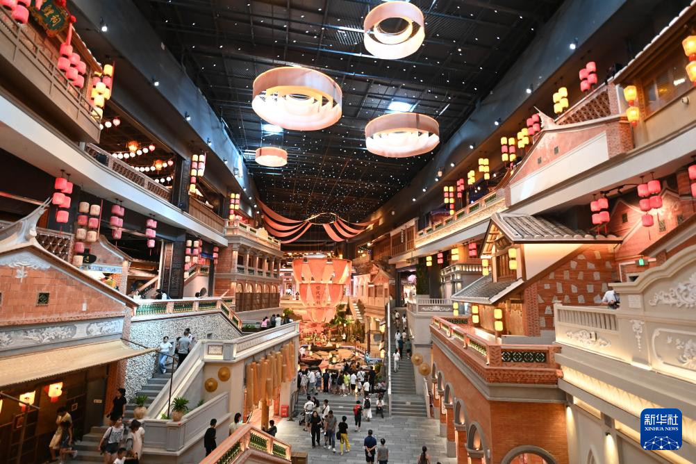 8月22日,游客在位于厦门东渡邮轮母港片区的闽南文化主题景区“屿见闽南·时光幻境”游玩。新华社记者 肖潇 摄