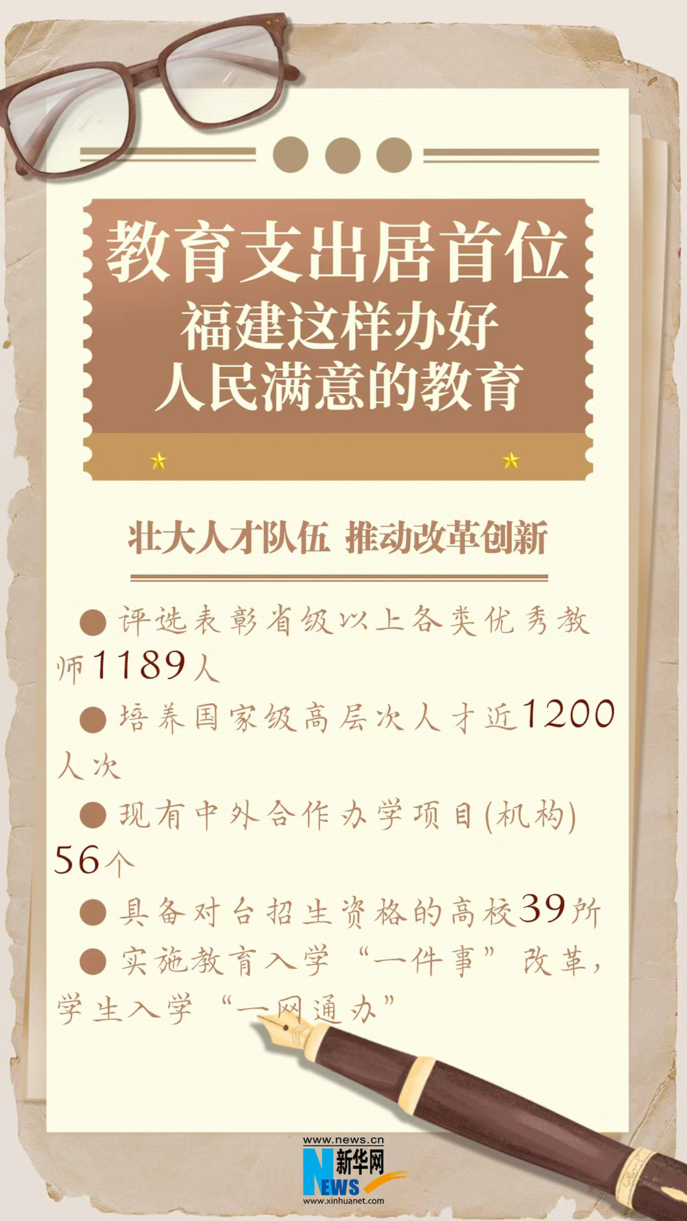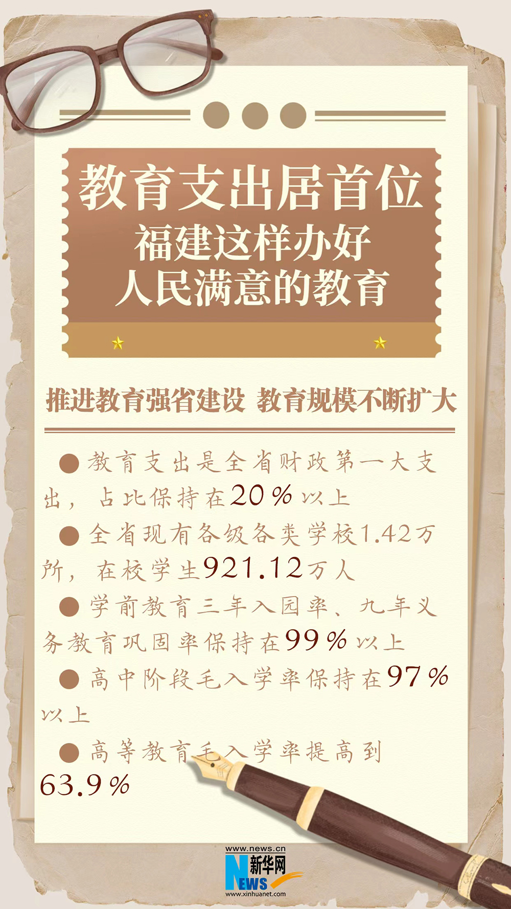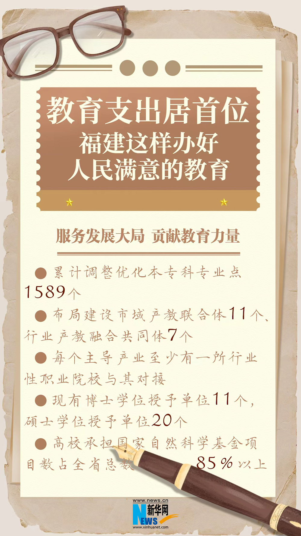 新华网福州8月26日电(蒋巧玲 袁羽)教育支出是全省财政第一大支出,学前教育三年入园率、九年义务教育巩固率保持在99%以上,每个主导产业至少有一所行业性职业院校与其对接……“十四五”以来,福建落实立德树人根本任务,奋力推进教育强省建设,在努力办好人民满意的教育上取得了一系列成效。26日,福建省政府新闻办召开“高质量完成‘十四五’规划 在中国式现代化建设中奋勇争先”系列主题新闻发布会(第三场),介绍并发布相关情况。
