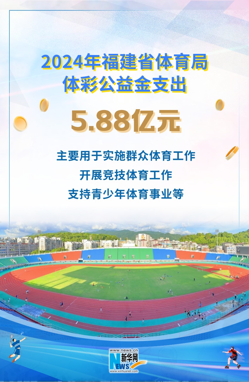 新华网福州9月5日电(蒋巧玲 连雨欣)福建体育彩票公益金来之于民、用之于民。2024年,福建共销售体育彩票154.59亿元,筹集体彩公益金38.79亿元。过去一年,它们被用在竞技体育、青少年体育、后备人才培养等各个领域,为全民健身事业添砖加瓦。