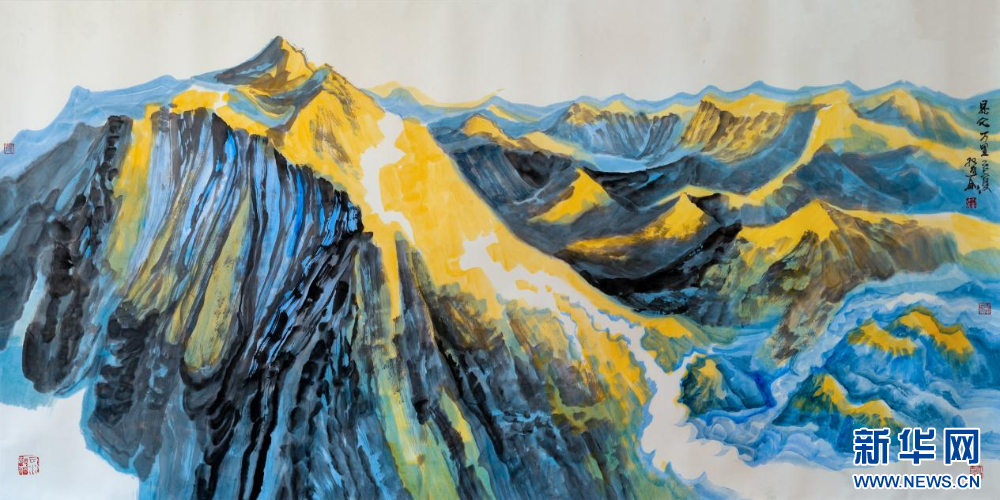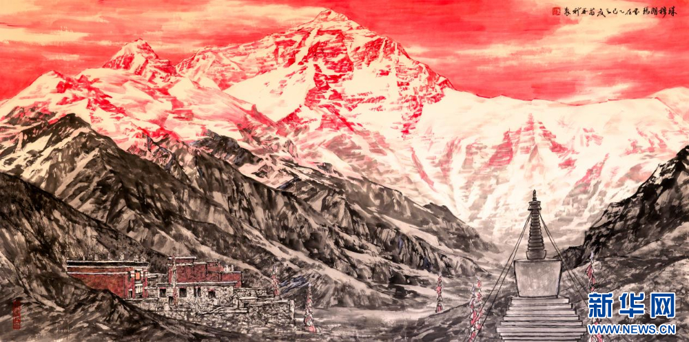 苗再新画作《珠穆朗玛》。新华网发(主办方供图)