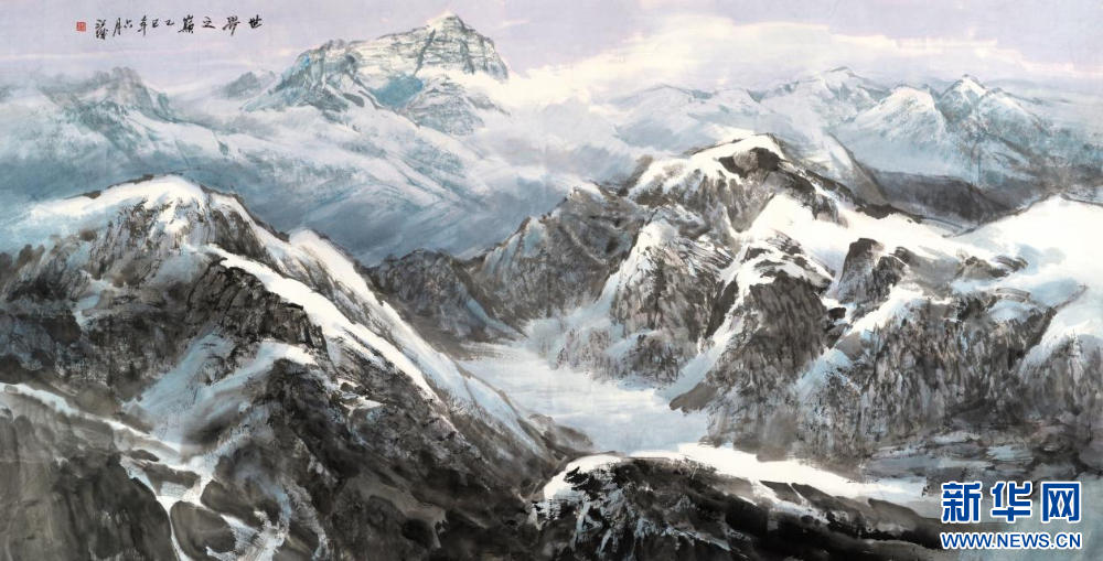 施江城画作《世界之巅》。新华网发(主办方供图)