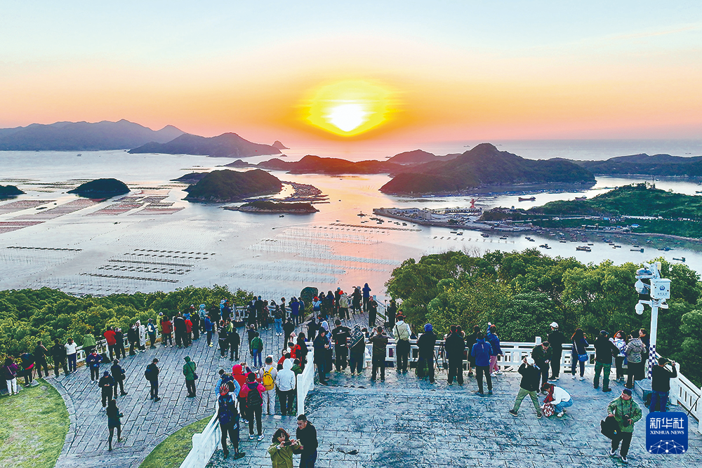 游客在霞浦县三沙镇花竹村观赏日出(2024年11月29日摄)。记者 姜克红 摄