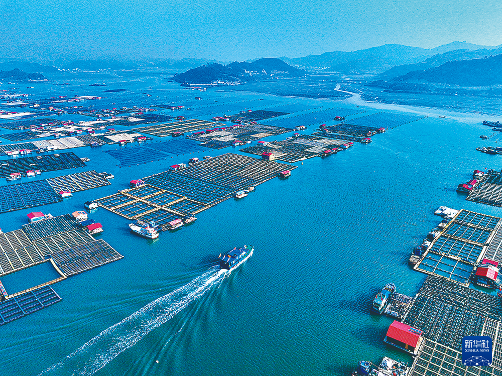 船只行驶在霞浦县海上养殖区(2024年1月11日摄)。记者 姜克红 摄