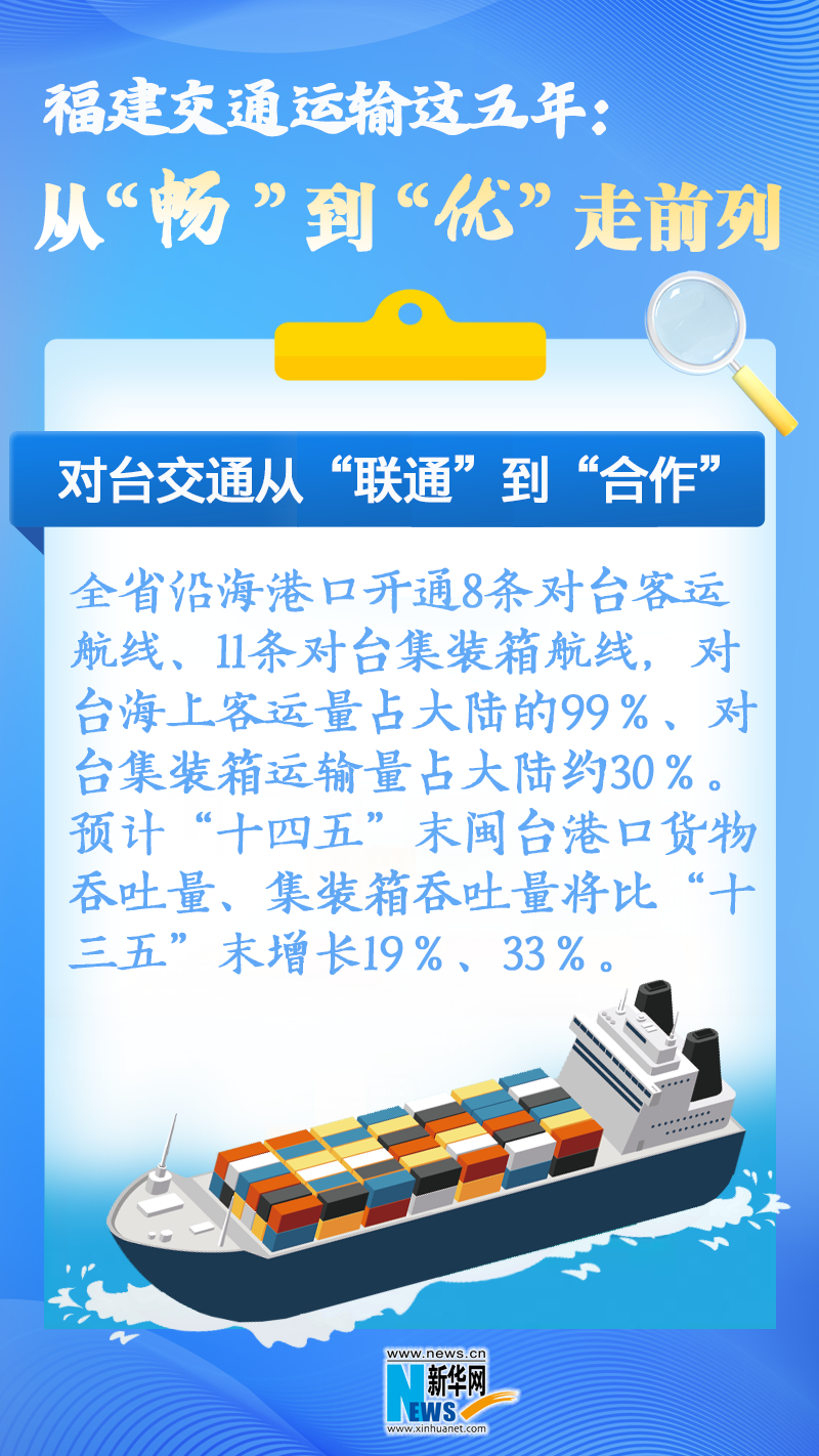 新华网福州10月11日电(蒋巧玲 连雨欣)交通运输是国民经济发展的“先行官”。“十四五”以来,福建加快建设交通强省,综合交通发展总体水平稳居全国先进行列,“人享其行、物畅其流”的美好愿景加快实现。10日,福建省政府新闻办召开“高质量完成‘十四五’规划 在中国式现代化建设中奋勇争先”系列主题新闻发布会(第八场),介绍并发布相关情况。